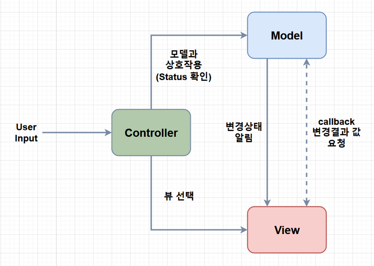 : 데이터 요청이 필요한 이벤트가 Model에 들어올 때 -> Model에 요청 후 받은 데이터를 View로 전달