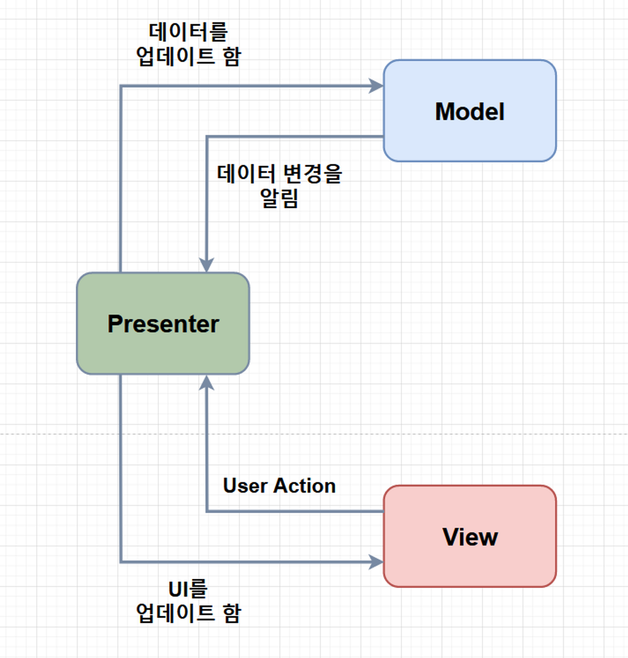 : 이벤트가 발생하면 Presenter에게 알리고 반환된 UI로 UI를 업데이트합니다.