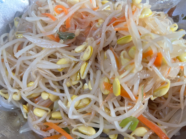 늘 그렇듯이 콩나물은 들기름으로 간을 하고 소금은 넣지 않고 간을 합니다.