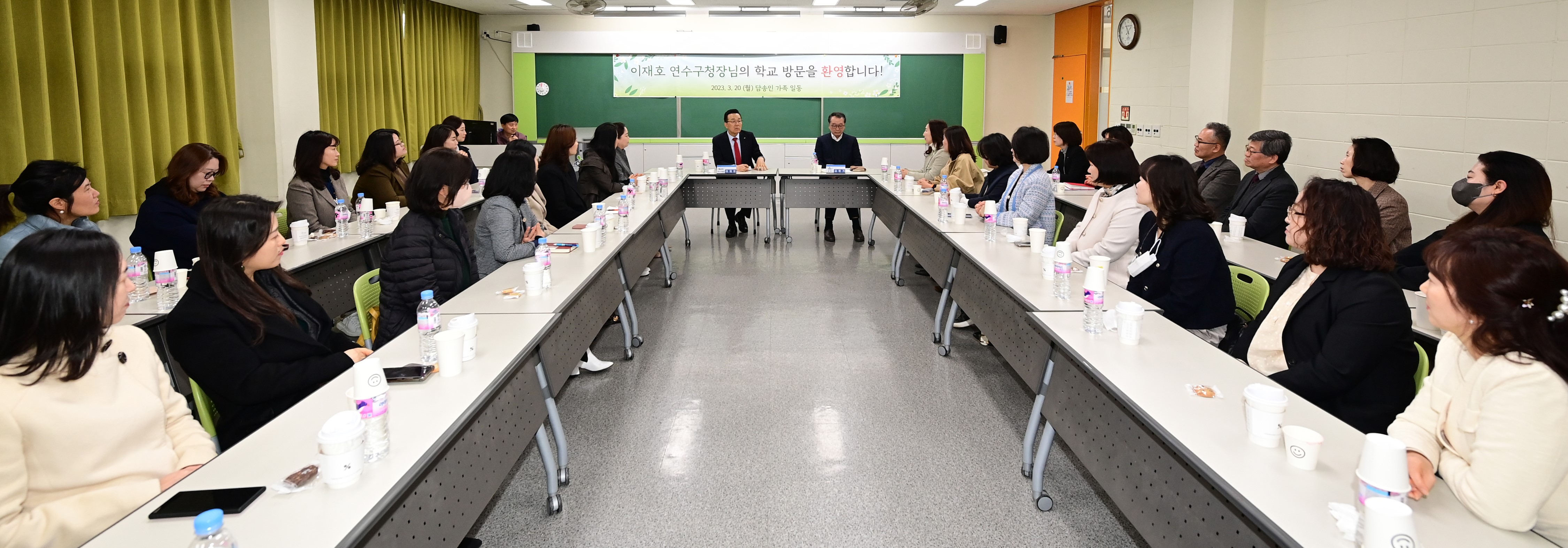 연수구청장 이재호 이번 학교 방문은 교육계의 다양한 의견을 수렴하는 좋은 기회가 될 것입니다.~라고 불리는우리 아이들이 보다 나은 교육환경에서 학습할 수 있도록 창의적 인재양성에 최선을 다하겠습니다..”~라고 불리는. / 정순학 기자